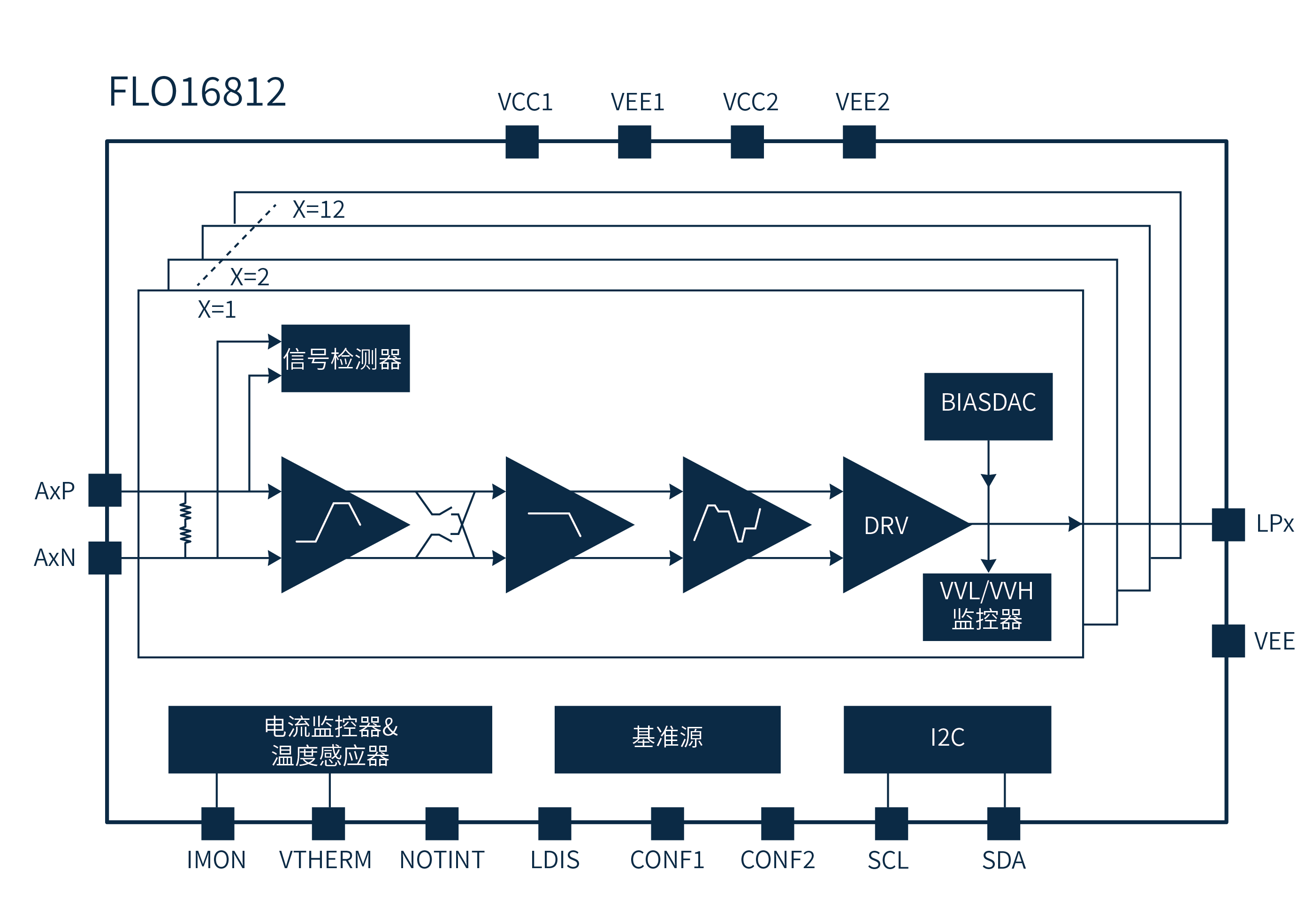 FLO16812VCSEL驱动器阵列是小型化,高可靠性和低功耗光发射模块的关键组件。该芯片包含CML输入,激光驱动器和监控功能。通过与VCSEL阵列相结合,可以完整的处理电信号到光信号的转换。标准硅技术和少量附加组件可实现经济高效且紧凑的组装。